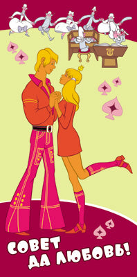 КД3-12340 Конверт для денег. Совет да любовь! Вертикальный (из мультфильма Бременские музыканты) (блестки в лаке)