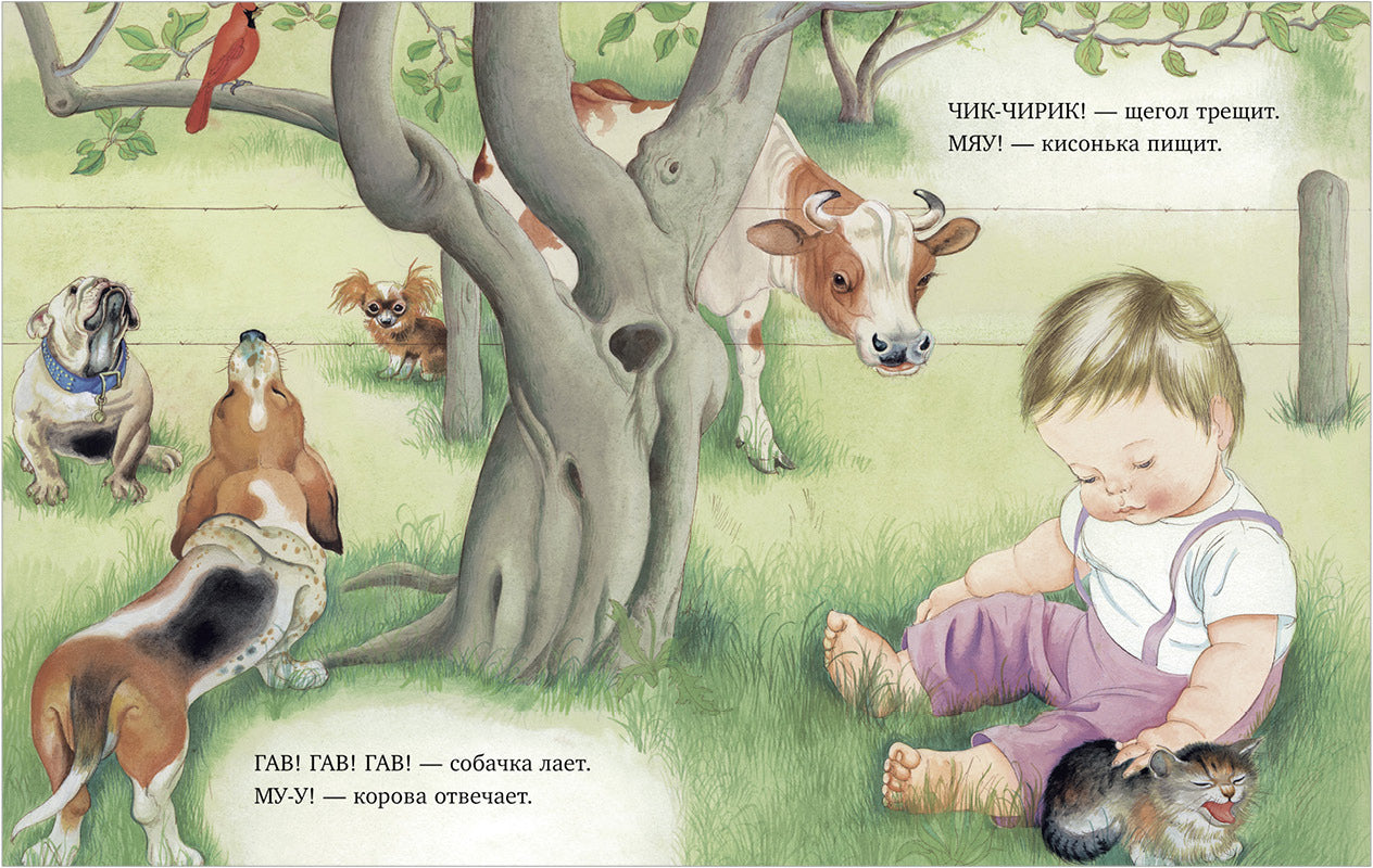 Что ты слышишь, мой малыш? Уилкин Э. Золотая библиотечка малыша «Книжка с простыми ритмичными стихами и невероятно милыми иллюстрациями», — редактор Clever. Книга «Что ты слышишь, мой малыш?» идеально подойдет для чтения самым маленьким. Если ваш кроха уже активно общается с помощью звуков, ему будет весело повторять их за вами, пока вы читаете книгу, и узнавать на картинке персонажей и предметы. ТИК-ТАК — тикают часы, ТУ-ТУ-У! — гудит паровоз, Ж-Ж-Ж-Ж — жужжит над цветком пчела. Как же здорово, что этот мир стучит, жужжит, поет и звенит на все...