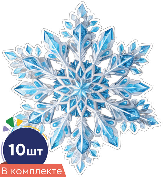 *КМ-17483 Набор украшений со скотчем. Снежинки. Двухсторонние (10 шт. в наборе)
