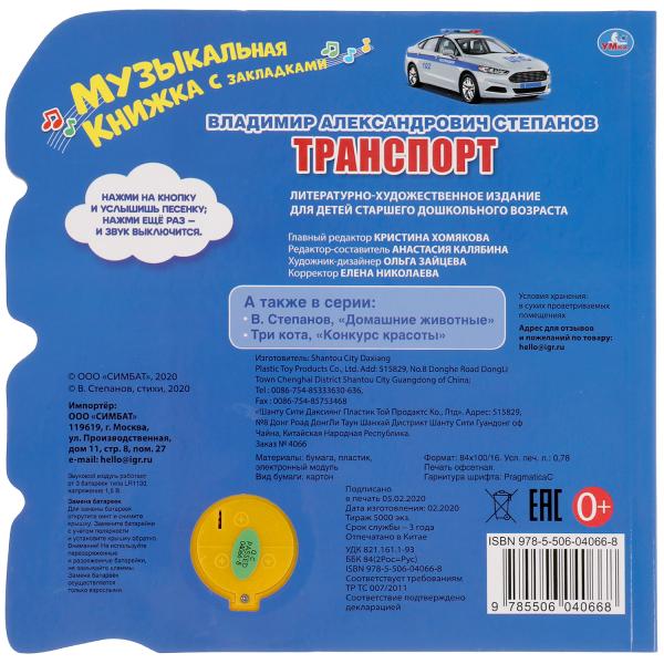 Книга детская СТЕПАНОВ В.А. (1 кн. 3 пес., закладки) 190х190мм 8стр Умка в кор.40шт