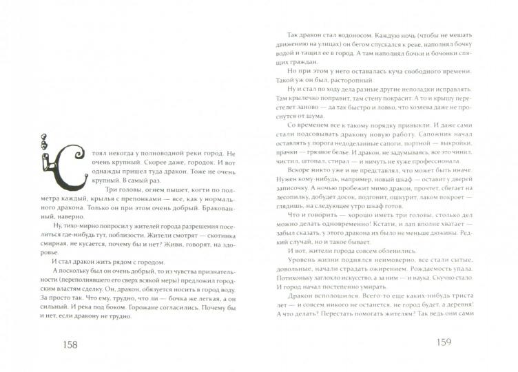 В мире, где живут одни драконы, особой любовью местного населения пользуются сказки про людей. Наблюдая за судьбой сказочного человечка (наверняка - выдуманного автором), драконы-читатели примеряют на себя его шкуру, вернее - кожу, и неожиданно понимают, что разница между ними не слишком велика. В мире героев, напротив, очень популярны сказки о животных. Читая их, герои сначала задумываются о видовом разнообразии, а потом приходят к выводу, что, несмотря на это самое разнообразие, все живые твари в чём-товесьма схожи. В мире ангелов и демонов с охотой пересказывают друг другу сказки о героях - начинают для того, чтобы посмеяться над этими слабыми, возомнившими о себе невесть что людишками, а в итоге приходят к выводу, что... Ну и так далее. Вы уже догада лись, что в этой книге неспроста собраны сказки про людей, драконов, героев и многих-многих других существ. С виду все они разные, но если присмотреться повнимательнее - почти в каждом можно узнать самого себя.