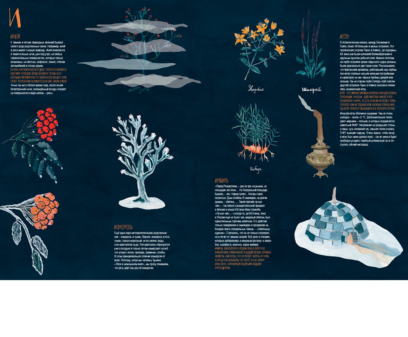 Что такое зима? Это снежинки, морозные узоры на окне, новогодние каникулы, санки, коньки, лыжи. А ещё зима - это целый материк, это арктические экспедиции, гонки на собачьих упряжках, полярная ночь и несколько ледниковых периодов. Эта книга - большой словарь зимы и всего зимнего. Здесь в алфавитном порядке собраны факты, истории, мифы и легенды о льде, холоде и снеге. Зима в этой книге показана через призму разных наук: от астрономии до философии и от биологии до истории. Всё, что мы любим в зиме, и всё, что поражает наше воображение, тайны природы и опасные приключения прошлого, законы физики и фантастические сказки - всё это собрано здесь, под одной обложкой.