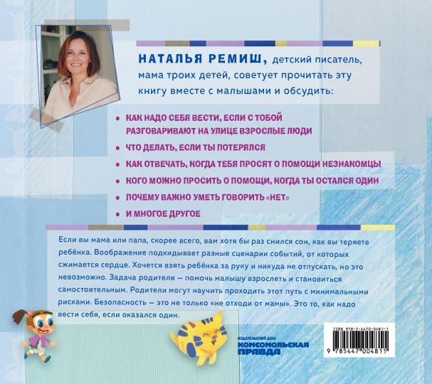 Наталья Ремиш, детский писатель, автор проектов "Просто о важном. Про Миру и Гошу" и мама троих детей советует прочитать эту книгу вместе с малышами и обсудить:- как надо себя вести, если с тобой разговаривают на улице взрослые люди,- что делать, если ты потерялся,- как отвечать, когда тебя просят о помощи незнакомцы,- у кого можно просить о помощи, когда ты остался один,- почему важно уметь говорить "нет".И многое другое. Безопасность - это не только "не отходи от мамы". Это то, как надо вести себя, если оказался один.