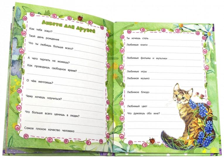 А в конце книги - конвертик для памятных мелочей. И с каждой страницы смотрят милые котики! В дневнике плотная офсетная бумага - на ней так приятно писать.
