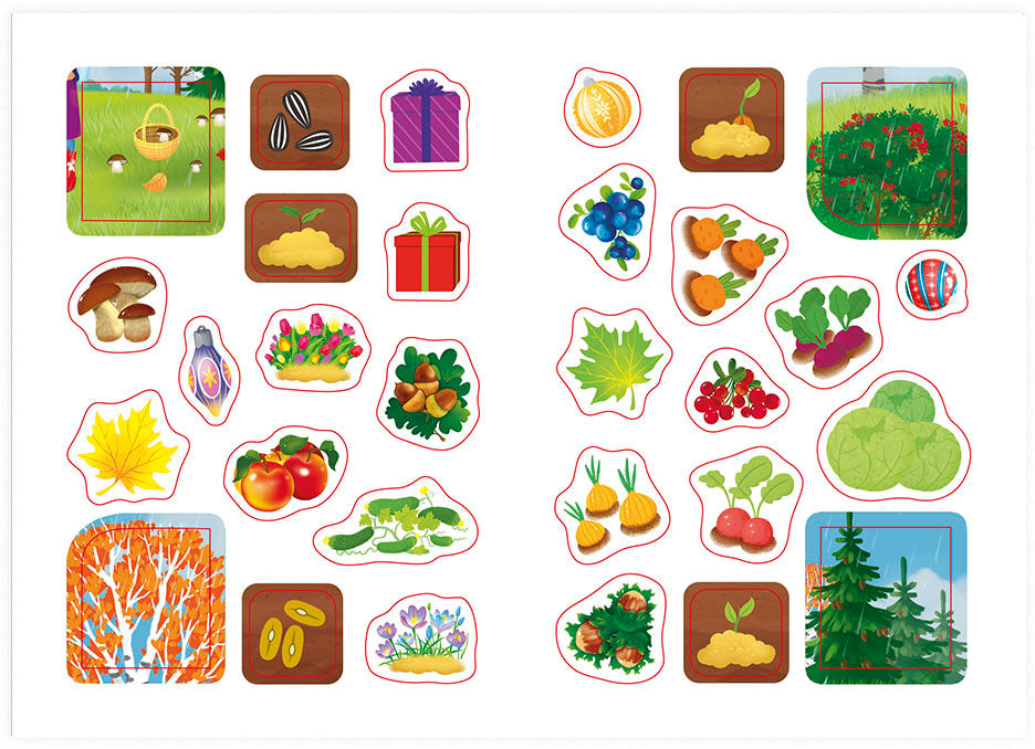 Книжка с заданиями и наклейками. Времена года Книжка с заданиями «Времена года» поможет весело изучить и повторить знания по всем временам года! Выполняя интересные задания и решая головоломки, детвора узнает, как различаются времена года между собой. Кроме того, книжка волшебная. Её обложка сказочным образом превращается в интереснейшую игру-ходилку. А теперь пора отправляться в увлекательный мир познания!
