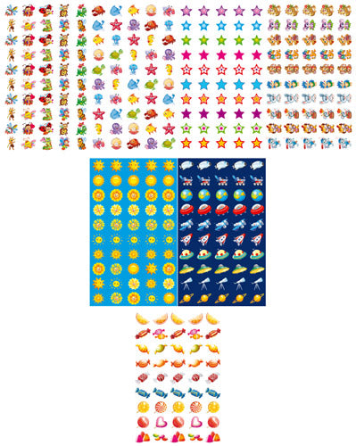 Комплект состоит из 7-ми наборов наклеек для поощрения: