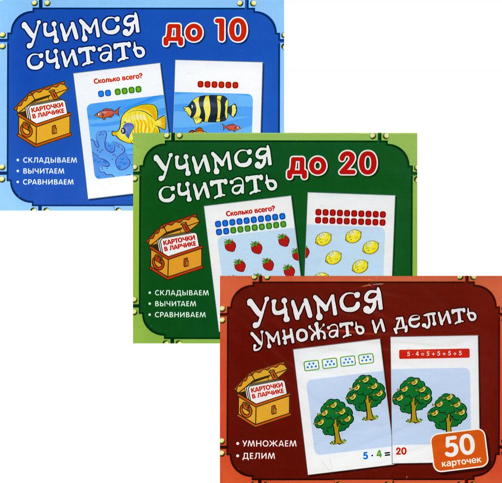 Комплект. Карточки в ларчике. Учимся считать, умножать и делить (3 шт.)