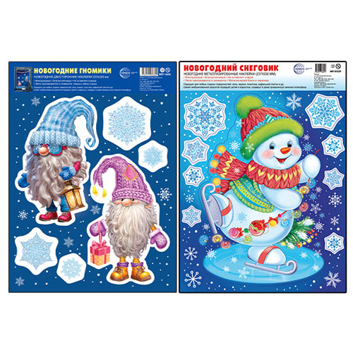 - НМТ1-16503 Новогодние наклейки на окна А4+. Гномики новогодние (видны с обеих сторон, снежинки из белил)