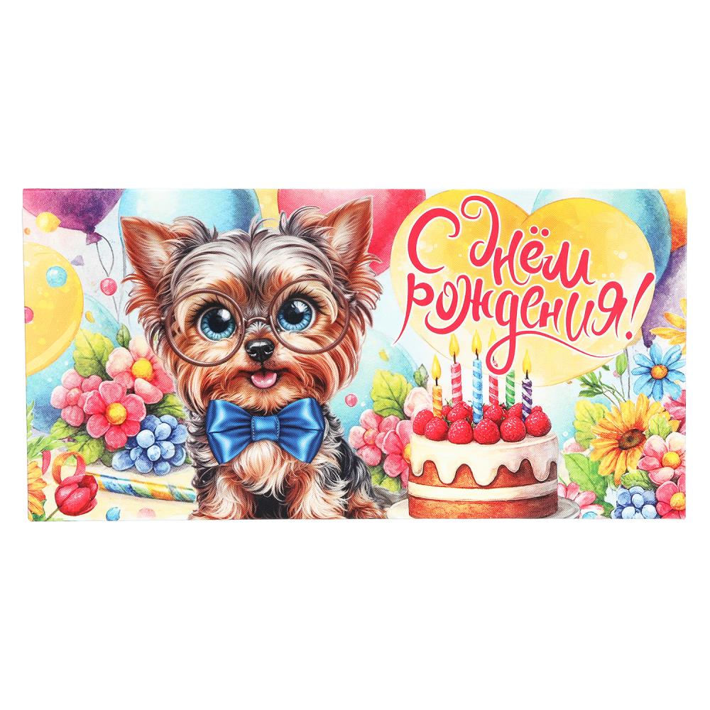 Конверт для денег собачка в очках, с днем рождения ЧУДО ПРАЗДНИК уп-10шт в кор.100уп