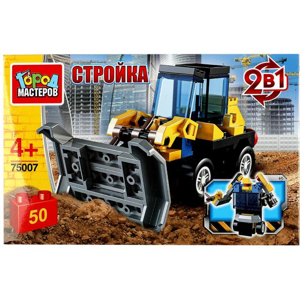 Конструктор БУЛЬДОЗЕР 2в1 (инерция), 50 дет. Город мастеров в кор.2*40шт