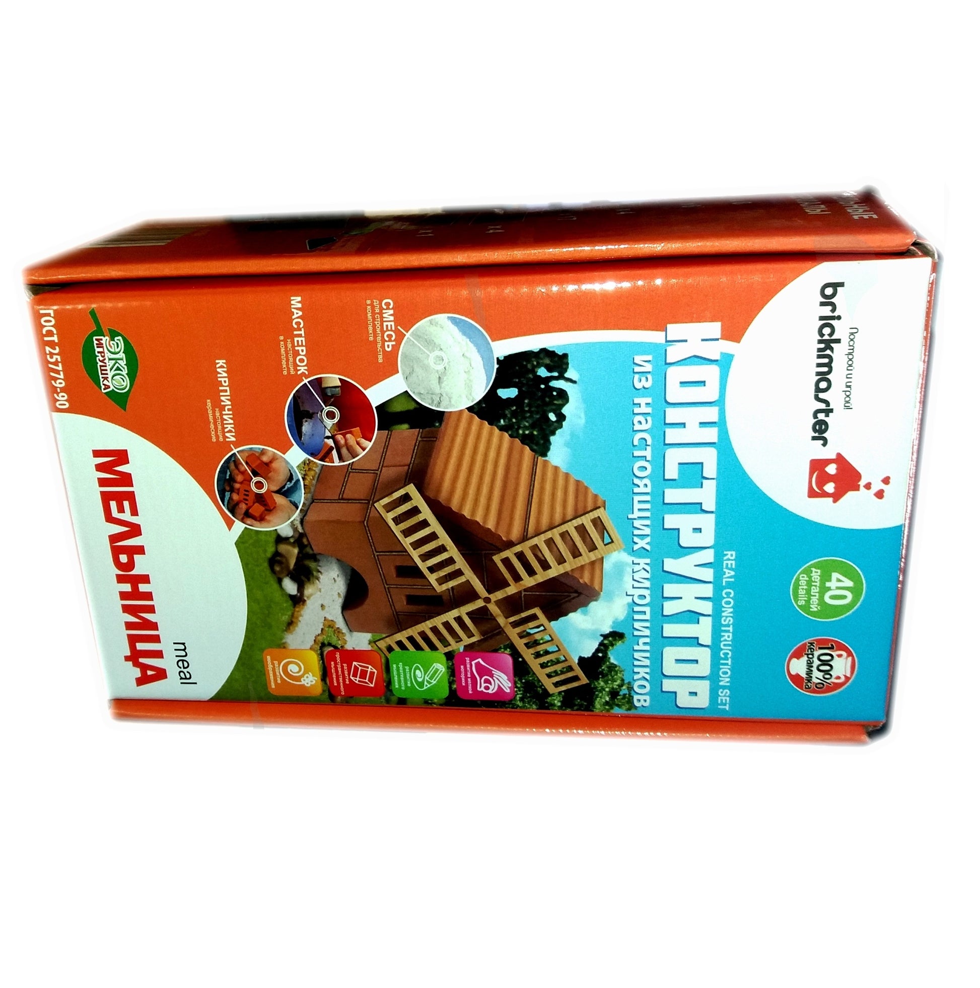 КОНСТРУКТОР "МЕЛЬНИЦА" ИЗ НАСТОЯЩИХ КИРПИЧИКОВ (40 ДЕТАЛЕЙ) в кор.12шт