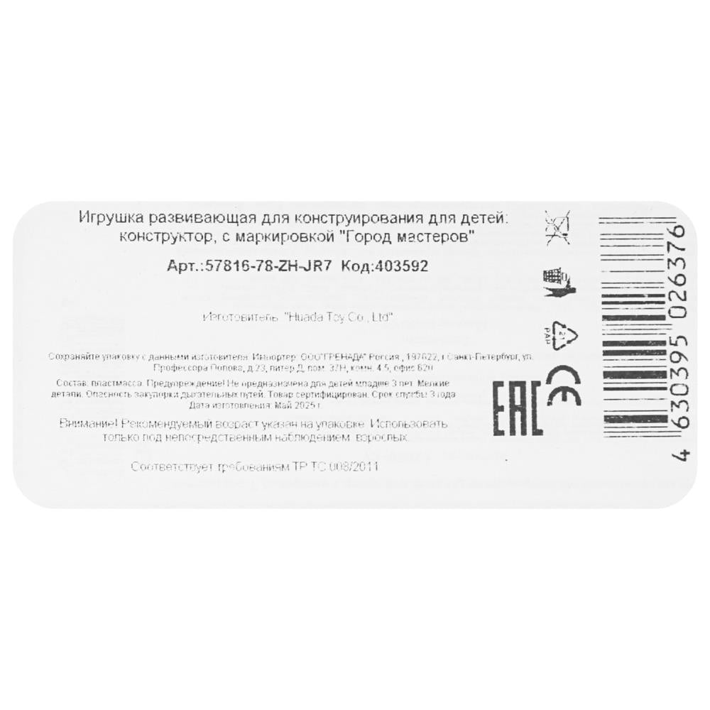 Handling time: 14 days Игрушка "Конструктор мой мир, 132 дет. Город мастеров в кор.36шт". Размер: 0.145.
