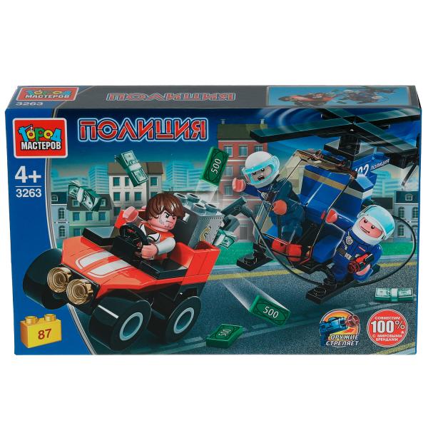 Конструктор полицейская погоня на вертолете, 87 дет. Город мастеров в кор.36шт