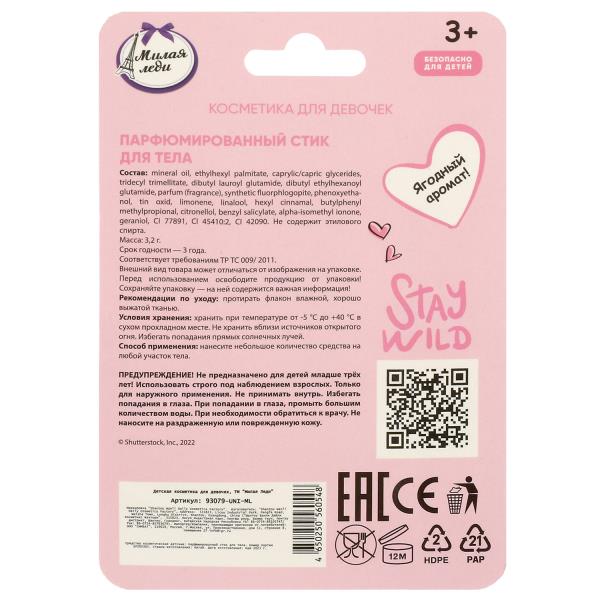 Косметика ДЛЯ ДЕВОЧЕК парфюмированный стик, 3,2 г МИЛАЯ ЛЕДИ в кор.6*24шт