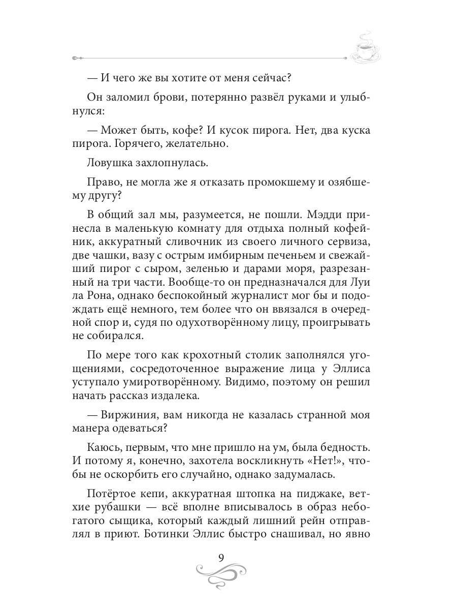 Handling time: 19 days Автор: Ролдугина Софья, «Кофе с привкусом вишни»: Детектив Эллис посвятил свою жизнь чужим тайнам. Однако и у него есть секреты, о которых он предпочёл бы не вспоминать… и от которых не в силах избавиться. Леди Виржиния и рада была бы помочь другу, но слово, данное маркизу Рокпорту, связывает её по рукам и ногам. Теперь ни шагу нельзя ступить без одобрения опекуна, а любой неосторожный поступок может обернуться бедой для дорогих ей людей. Самое время проявить благоразумие и остаться в стороне от любых расследований… Но тугая спираль событий уже закручивается. Прошлое смешивается с настоящим; пустяковая просьба о встрече влечёт за собой самые серьёзные последствия. И развязка наступит: сладкая, как вишня, горькая, как вишнёвая косточка.