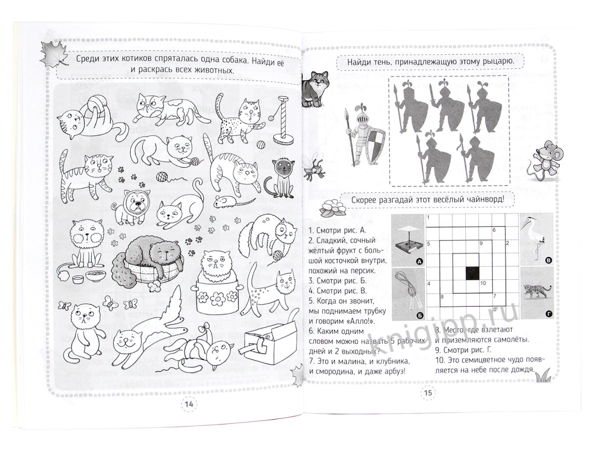 С этой замечательной брошюрой не заскучает даже самый активный ребёнок. В ней собраны разнообразные головоломки, ребусы, лабиринты, графические задания, которые помогут развить смекалку и увеличить словарный запас. Если какие-либо задачи покажутся сложными, их можно сверить с ответами в конце книги. А теперь вооружайся карандашами - и за дело!