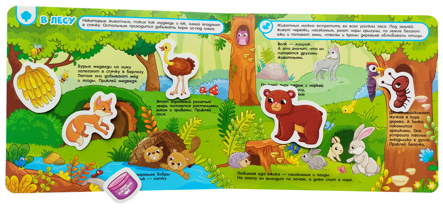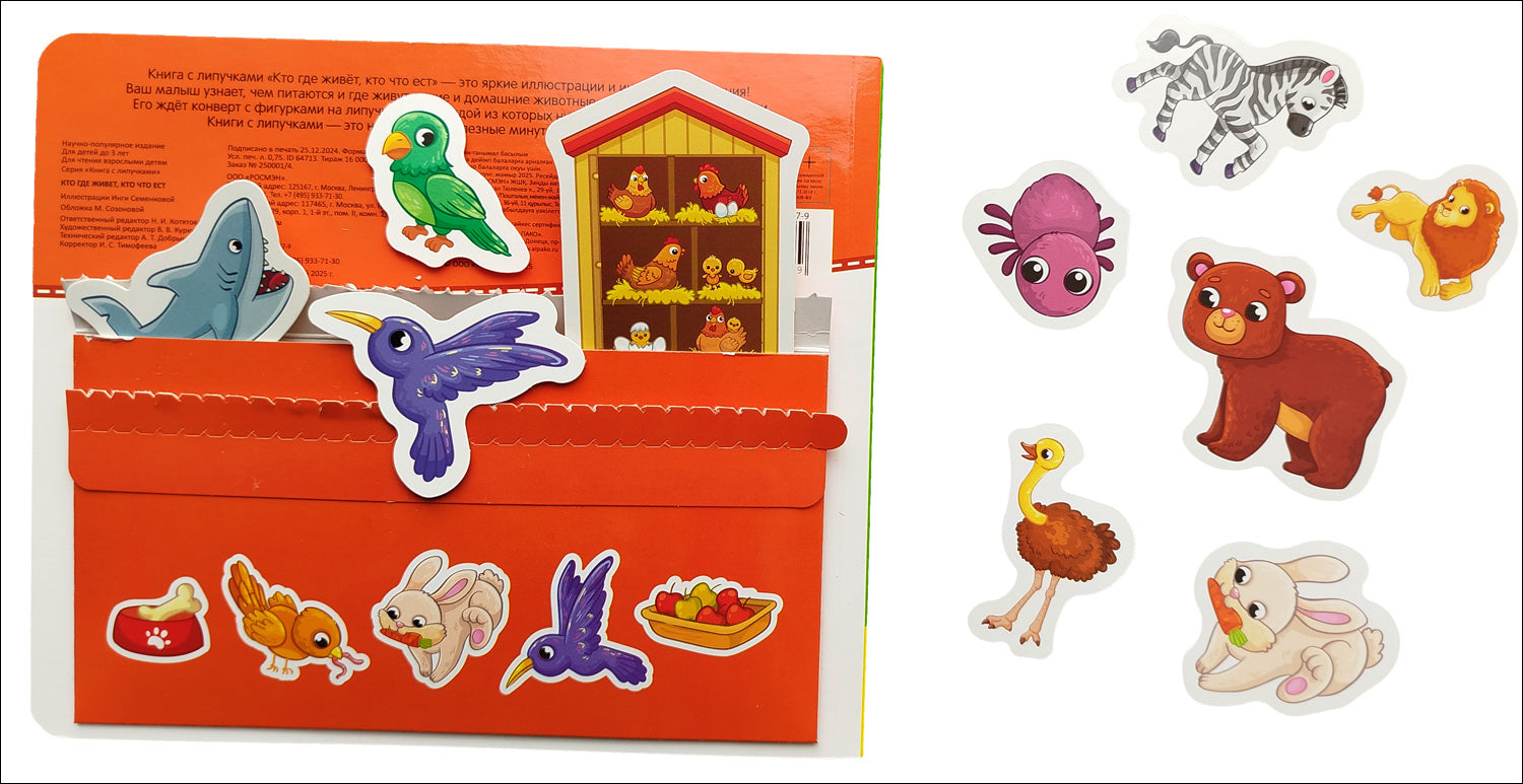 Кто где живет, кто что ест. Книга с липучками