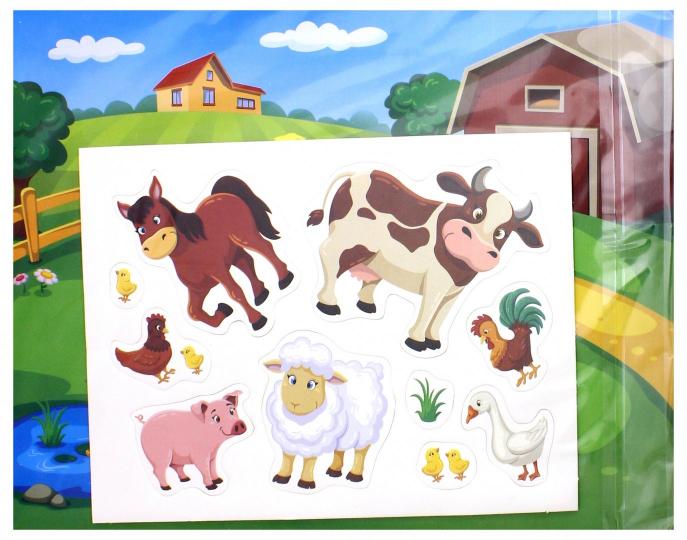 Этот комплект поможет малышу узнать, каких животных можно встретить на ферме, потренировать мелкую моторику и развить фантазию.Предложите ребенку не только "оживить" карточку наклейками, но также придумать и рассказать историю, опираясь на иллюстрацию.