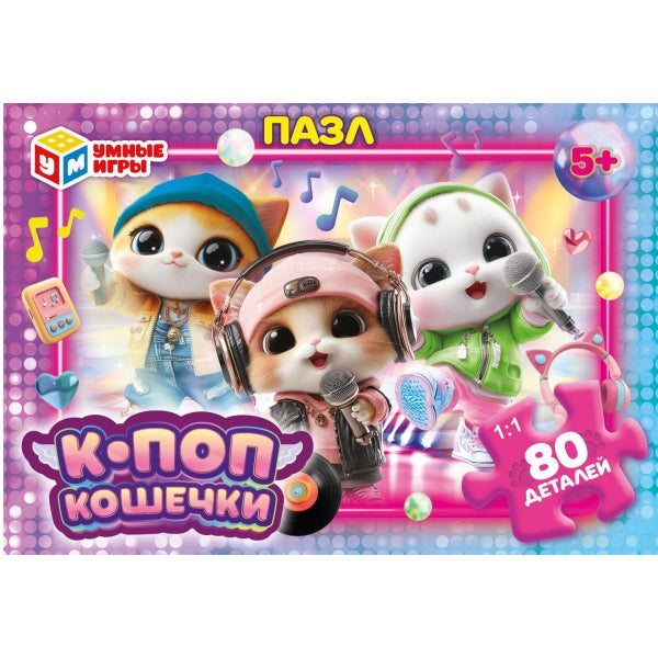 К-поп кошечки. Пазлы в коробке 80 деталей. 130х90х25 мм. Умные игры в уп.16шт в кор.8уп