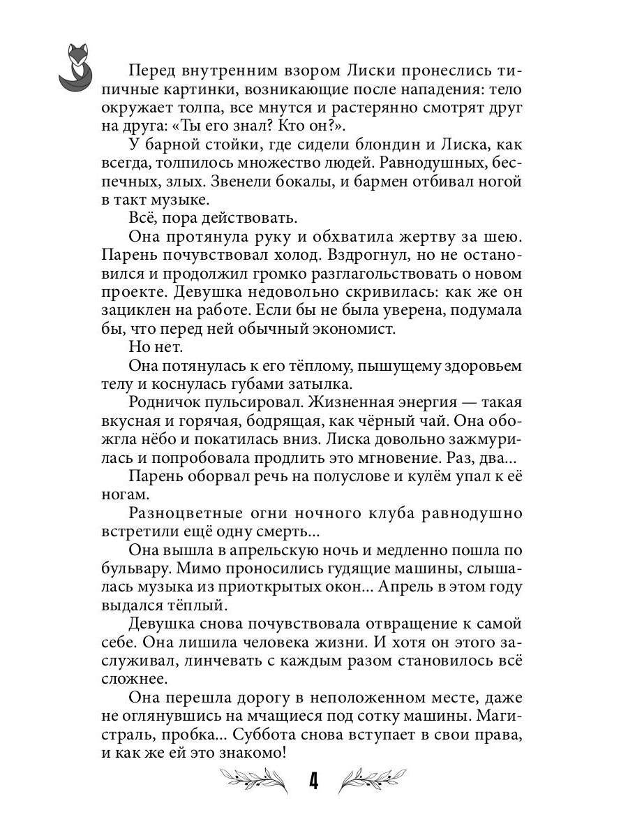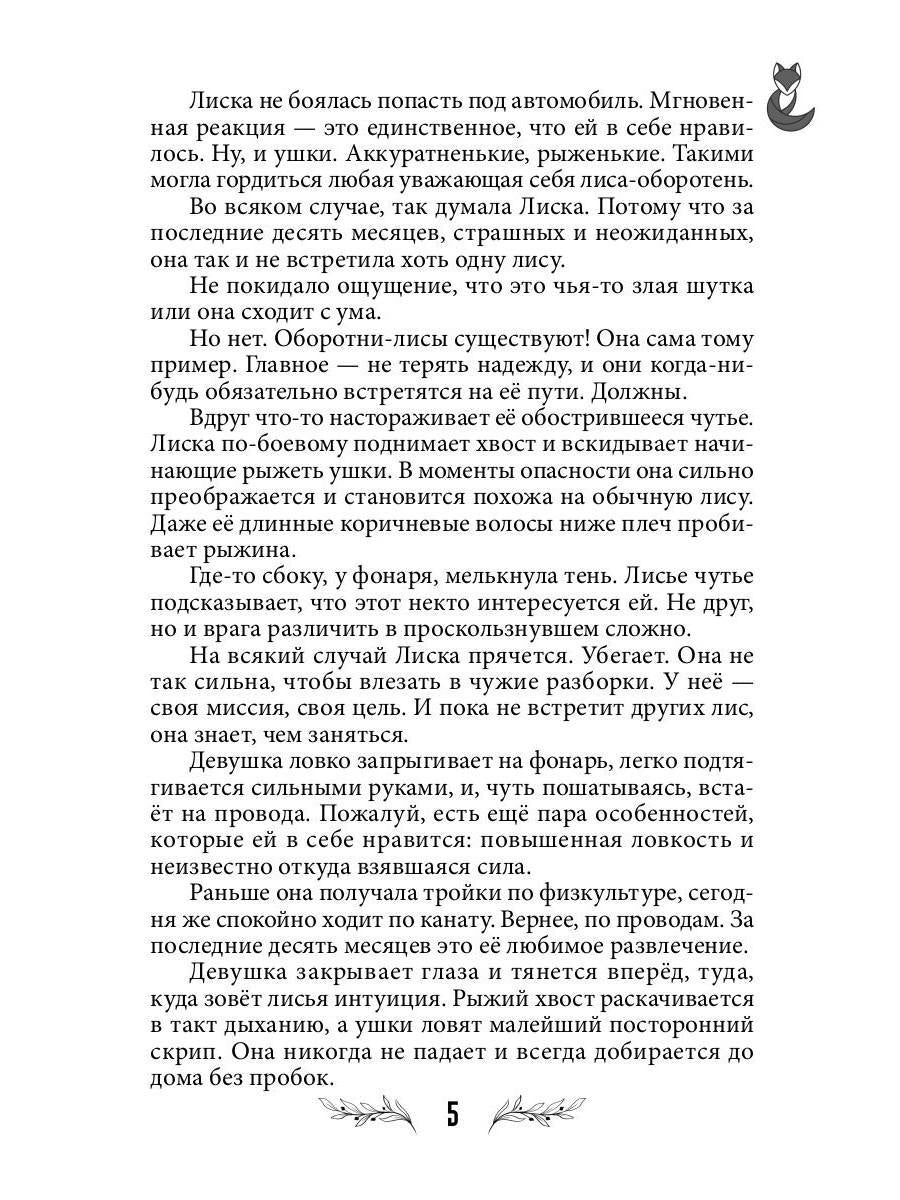 Handling time: 19 days Автор: Миш Виктория, «Лисья кровь»: Когда Марина набрела на Храм лис, её жизнь круто изменилась. Из серой мышки она превратилась в отступницу-лису, соблазнительное зло, смертельную угрозу для всего живого. Вот только мир лис жесток и беспощаден. Он не прощает ошибок. И Марине придется самой разбираться со своей сущностью — внутренней лисой, так смело рвущейся наружу. В этом ей помогут друзья — спятившая сестра, пророчащая стихами, и однокурсник-гот, замкнутый парень со своими проблемами. Удастся ли Марине обуздать жажду крови? Помочь близким и защитить их от опасности? Она постарается. Правда, на лису-отступницу уже объявлена охота.