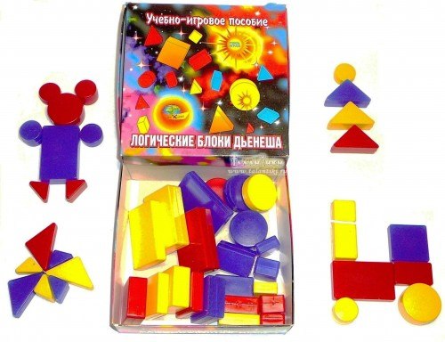 Набор логических блоков состоит из 48 объемных геометрических фигур, различающихся по форме, цвету, размеру и толщине.Таким образом, каждая фигура характеризуется четырьмя свойствами: цветом, формой, размером и толщиной.В наборе нет даже двух фигур, одинаковых по всем свойствам. Конкретные варианты свойств (красный, прямоугольный) и различия по величине и толщине фигур дети легко распознают и называют.Для работы с детьми одной группы на протяжении всего дошкольного детства требуется один-два набора объемных логических фигур блоков и набор плоских логических фигур на каждого ребенка.В набор блоков входят: 12 кругов б больших (красный толстый, красный тонкий, синий толстый, синий тонкий, желтый толстый, желтый тонкий) и б маленьких (красный толстый, красный тонкий, синий толстый, синий тонкий, желтый толстый, желтый тонкий), 12 таких же квадратов, 12 прямоугольников, 12 треугольников.Логические блоки помогают ребенку овладеть мыслительными операциями и действиями, важными как в плане предматематической подготовки, так и с точки зрения общего интеллектуального развития.К таким действиям относятся: выявление свойств, их абстрагирование, сравнение, классификация, обобщение, кодирование и декодирование, а также логические операции "не", "и", "или". Более того, используя блоки, можно закладывать в сознание малышей начала элементарной алгометрической культуры мышления, развивать у них способность действовать в уме, осваивать представления о числах и геометрических фигурах, пространственную ориентировку.Игры и упражнения с логическими блоками вы можете предлагать детям на занятиях и в свободные часы, как в детском саду, так и дома.Если вы дополните их другими развивающими играми и заданиями, насытите новыми игровыми элементами (игровыми задачами, действиями, ролями и пр.), то этим только поможете детям в преодолении интеллектуальных препятствия.000 "Корвет" предлагает Вам учебно-методический комплекс игровых материалов к "Логическим блокам Дьенеша":- Альбом заданий "Блоки Дьенеша для самых маленьких" (2-3 года)- Альбом заданий "Маленькие логики" (2-3 года)- Альбом заданий "Маленькие логики-2" (3-4 года)- Альбом заданий "Лепим нелепицы" (с 4-х лет)- Альбом заданий Блоки Дьенеша для старших "Поиск затонувшего клада" (5-8 лет)- Альбом заданий Блоки Дьенеша для старших "Праздник в стране блоков" (5-8 лет)- Альбом заданий Блоки Дьенеша для старших "Спасатели приходят на помощь" (5-8 лет)- "Давайте вместе поиграем" (комплект из 20 игр) (3-8 лет).Сделано в России.