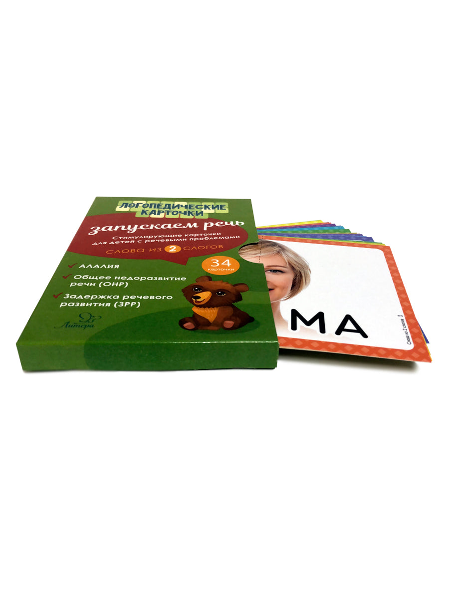 Handling time: 14 days Логопедические карточки. Запускаем речь. Слова из 2 слогов. 34 карточки Логопедические карточки помогут малышам с 2-х лет стимулировать речь. Также они рекомендуются для занятий с детьми с алалией, общим недоразвитием речи, задержкой речевого развития. С помощью карточек для запуска речи занятия можно превратить в веселую игру! В ходе игры малыш освоит слова из 2-х слогов и составит целые фразы. Карточки сделаны из плотного картона и упакованы в коробку для удобства хранения. В комплекте 34 предметные картинки к словам из 2 слогов и 34 сюжетные...