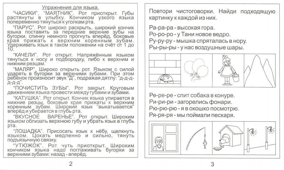 Уважаемые родители и педагоги! Предлагаем вашему вниманию тетрадь с логопедическими заданиями на закрепление в речи звуков [р] и [р']. Тетрадь можно использовать для работы с дошкольниками и младшими школьниками. Занятия с ребёнком необходимо проводить систематически, не реже трёх раз в неделю, закрепляя изученный материал в повседневной жизни. Перед началом занятия создайте у ребёнка положительный эмоциональный настрой, по окончании обязательно похвалите за старание. Добивайтесь того, чтобы ребёнок чётко и внятно произносил звуки в предложенных словах, самостоятельно называя картинки или повторяя слова за взрослым. Мы надеемся, что занятия по тетради помогут детям преодолеть недостатки звукопроизношения и сделать речь более чёткой и правильной. Желаем успеха!
