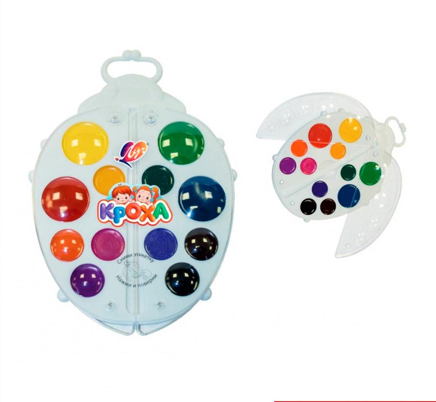 Медовая акварель серии "Кроха" имеет фигурную форму подложки, которую можно использовать как шаблон для создания рисунков, а в дальнейшем как палитру для смешения красок.Крупные кюветы очень удобны для малышей, так как позволяют использовать в работе толстую кисть. Фигурная форма подложки поможет родителям в игровой форме увлечь ребёнка творчеством. Безопасна для детей.Количество цветов: 12.Не предназначено для детей младше 3-х лет.
