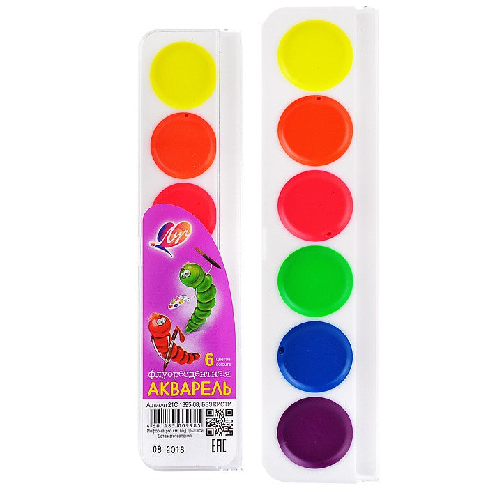 Луч. Акварель флуоресцентная 6 цветов без кисти (европодвес) арт.21С 1395-08 /48*