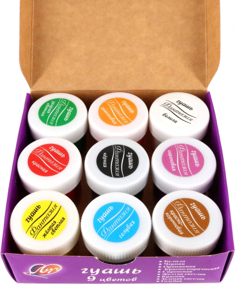Луч. Гуашь "Фантазия" 9 цв. по 15 мл. арт.25С 1528-08 /18*