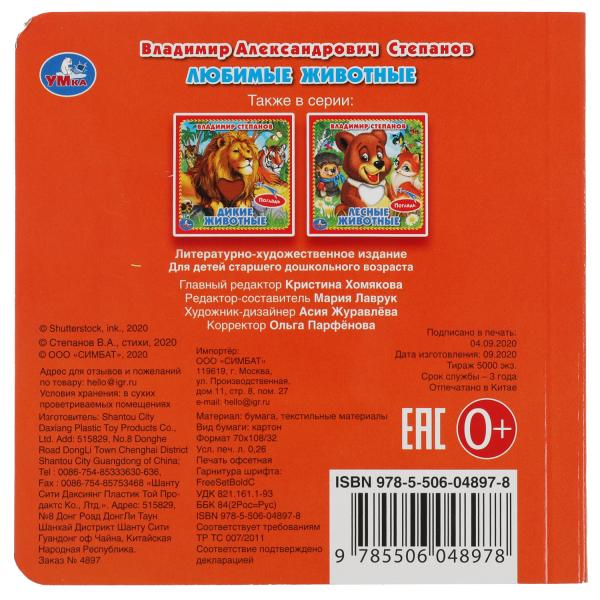 Любимые жив-ные Степанов В.А. (карт. книга 3 разв. с 4 тактил. эл-тами) 120х120мм Умка в кор.4*36шт
