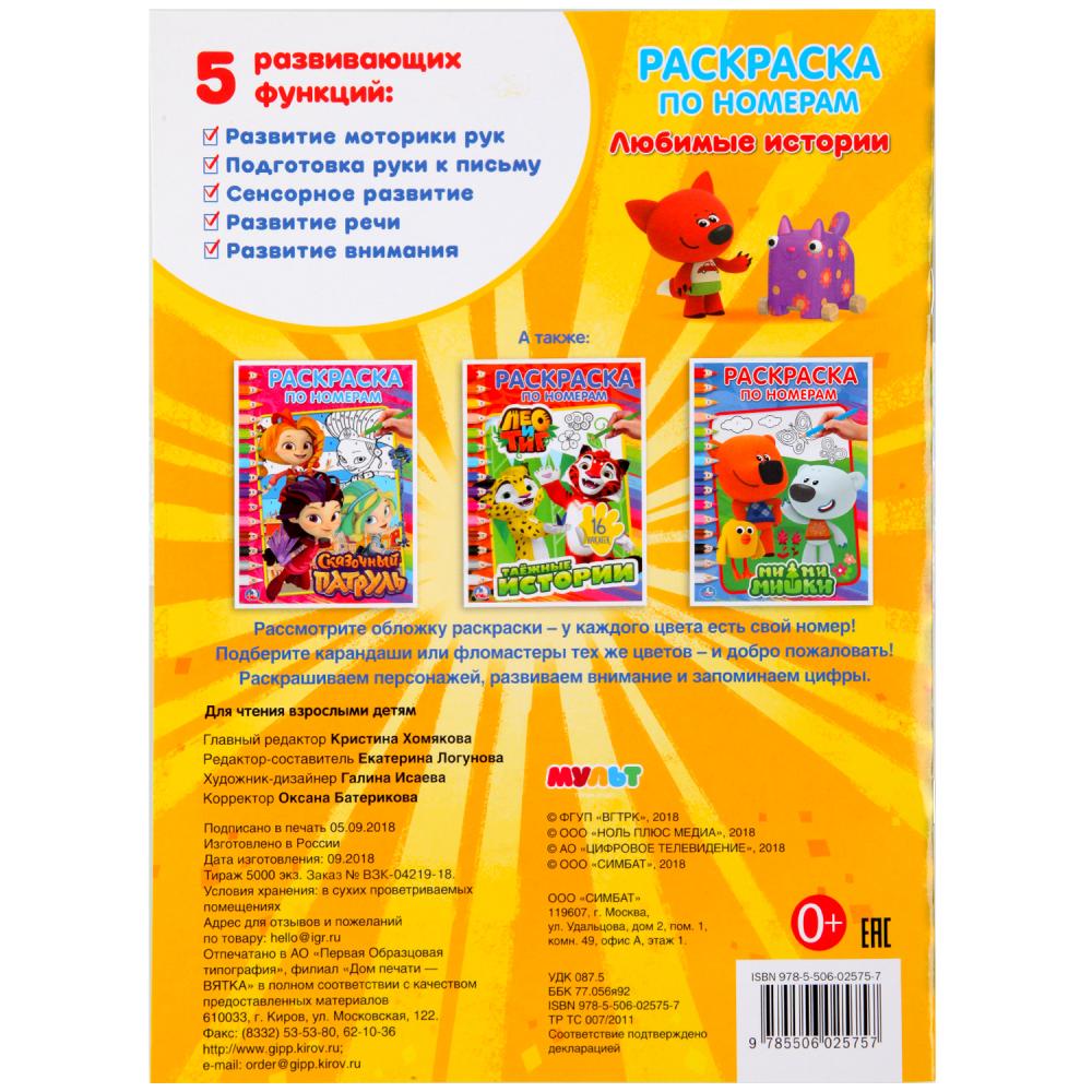 Раскраска по номерам «Мульт. Любимые истории» ТМ «УМка» обязательно понравится маленькому художнику:- тщательно прорисованные картинки для раскрашивания (жирный контур)- интересные и разнообразные иллюстрации- краткое описание персонажей- у каждого цв