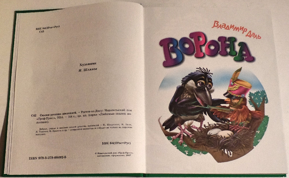 Handling time: 14 days Добрые, умные и весёлые сказки русских писателей - Николая Некрасова, Владимира Даля, Льва Толстого, Ивана Крылова и других - понравятся малышам и научат их поступать хорошо. Замечательная подборка произведений рассчитана на детей разных возрастов: и дошколят, и учеников младших классов, а совсем крохи смогут с интересом рассматривать крупные картинки и учиться листать книгу. Иллюстрации, созданные Игорем Шляховым, есть на каждом развороте. Большой формат и яркое оформление сделают книгу удачным приобретением и замечательным подарком на праздник!