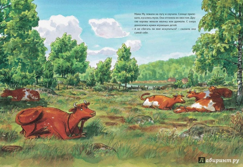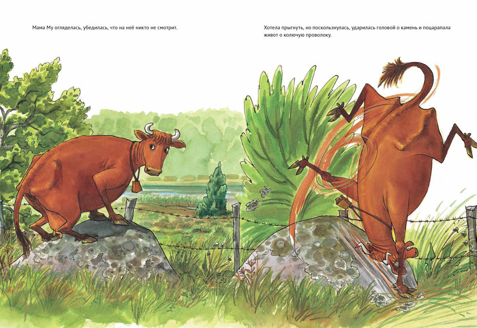 Самая непоседливая на свете корова Мама Му не может спокойно пастись на лугу, когда на дворе стоит погожий денёк. Она украдкой сбегает на озеро. Но по дороге Мама Му падает!