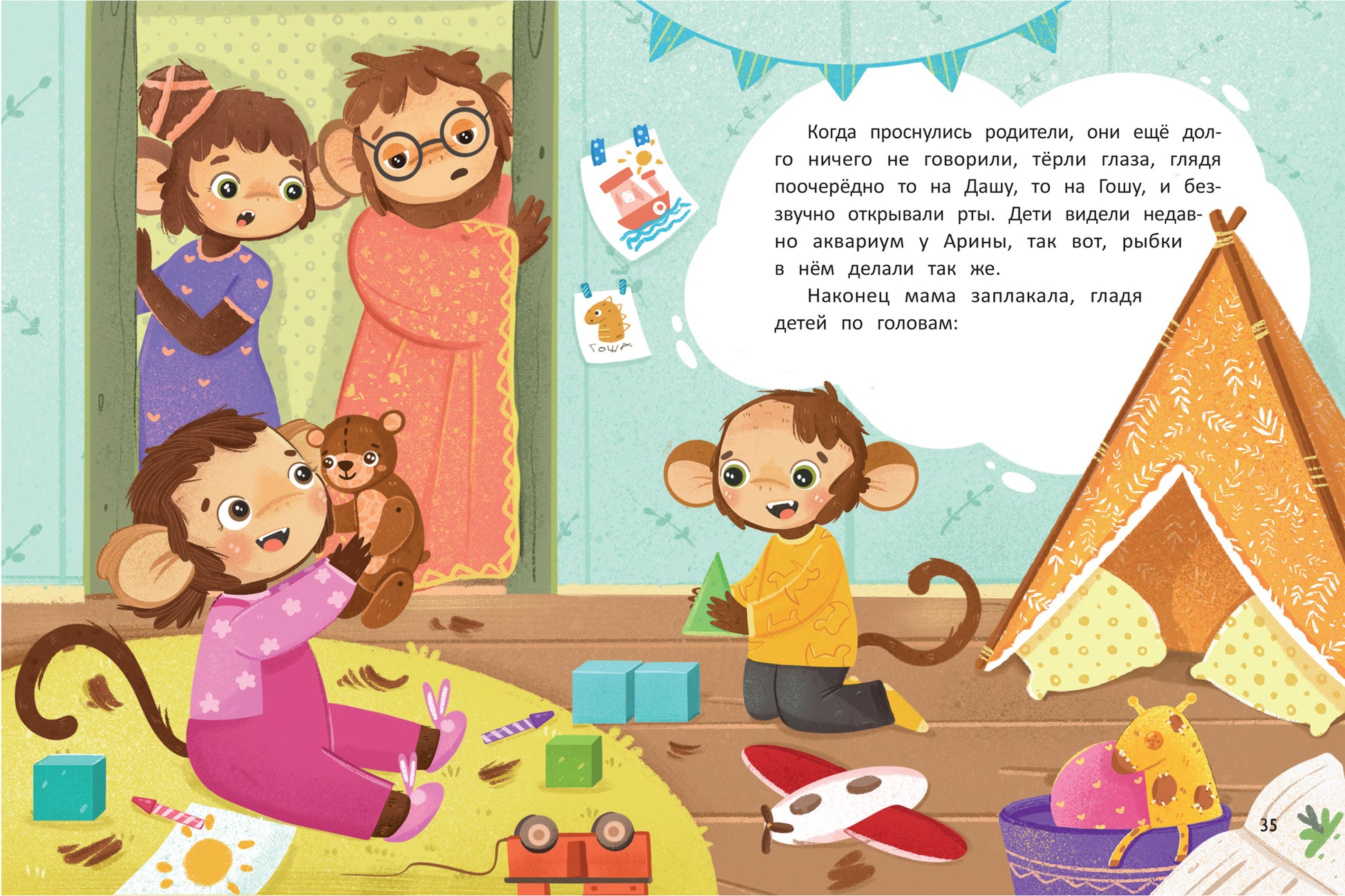 В Мартышкино живут... конечно, мартышки. У них есть дома и школа, детский сад и салон красоты... в общем, всё, как у людей. Только ещё и длинные хвосты в придачу. И дети там так же часто шалят. Ну, может, чуточку чаще. Взять хотя бы Гошу и Дашу...