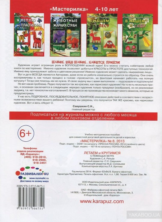 Художник играет огромную роль в ВОПЛОЩЕНИИ всякой идеи! Его можно считать соавтором любой книги по мастерению. Именно художник позволяет добиться КРАСОТЫ в ПРОСТОТЕ доступных технологий. Именно ему принадлежит забота о цветовом решении! Именно художник может сделать "выражение лица".Вот и дети ВСЕГДА являются Авторами, даже если их работа изначально строится по образцу. Они очень восприимчивы и, как только процесс в голове "прояснится", их фантазия начинает работать "на полную катушку"! Тогда уже помощь им не нужна. И свою задачу мы с вами выполнили - подсказали и подтолкнули!Но вот какая проблема. Редко получается так же красиво, как нарисовал художник! На то есть несколько причин, и основная заключается в следующем: нередко художник только придумал (изобразил), но не реализовал задумку, т.е. нет технологии изготовления. В процессе же производства возникает много нюансов, которые не предусмотришь.У нас есть ПОДРОБНОЕ, ПОСЛЕДОВАТЕЛЬНОЕ, ПОНЯТНОЕ описание действий в...Художник играет огромную роль в ВОПЛОЩЕНИИ всякой идеи! Его можно считать соавтором любой книги по мастерению. Именно художник позволяет добиться КРАСОТЫ в ПРОСТОТЕ доступных технологий. Именно ему принадлежит забота о цветовом решении! Именно художник может сделать "выражение лица".Вот и дети ВСЕГДА являются Авторами, даже если их работа изначально строится по образцу. Они очень восприимчивы и, как только процесс в голове "прояснится", их фантазия начинает работать "на полную катушку"! Тогда уже помощь им не нужна. И свою задачу мы с вами выполнили - подсказали и подтолкнули!Но вот какая проблема. Редко получается так же красиво, как нарисовал художник! На то есть несколько причин, и основная заключается в следующем: нередко художник только придумал (изобразил), но не реализовал задумку, т.е. нет технологии изготовления. В процессе же производства возникает много нюансов, которые не предусмотришь.У нас есть ПОДРОБНОЕ, ПОСЛЕДОВАТЕЛЬНОЕ, ПОНЯТНОЕ описание действий в соответствии с возрастными возможностями вашего ребенка! Поэтому мы уверены, что получится ТАК ЖЕ красиво, как нарисовал художник. Вот и весь секрет