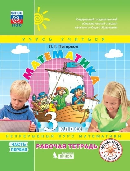 Рабочая тетрадь по математике курса «Учусь учиться» Предлагаемый курс математики для начальной школы является частью единого непрерывного курса математики для дошкольников, начальной школы и 5-9 классов средней школы, который создан в Центре системно-деятельностной педагогики «Школа 2000...» АПК и ППРО РФ с позиций реализации новых целей образования, установленных ФГОС, — достижение личностных, метапредметных и предметных результатов образования и готовности к саморазвитию на основе формирования у учащихся познавательной мотивации, универсальных учебных действий и умения учиться в целом. Он разработан на базе психолого-педагогических исследований, проведенных в 70—90-х годах в НИИ ОПП АПН СССР (В. В. Давыдов, Н. Я. Виленкин и др.), и достижений современной российской методологической школы (Г. П. Щедровицкий, О. С. Анисимов и др.). В программе курса математики «Учусь учиться» для 1—4 классов начальной школы и научно-методической литературе по программе «Школа 2000…» приведены цели и задачи курса, его общая характеристика, технологическая и дидактическая основа — дидактическая система деятельностного метода «Школа 2000…», уровни ее реализации, способ формирования универсальных учебных действий (УУД) на основе надпредметного курса «Мир деятельности», типология уроков, структура курса (содержательно-методические линии: числовая, алгебраическая, геометрическая, функциональная, логическая, линии анализа данных и текстовых задач), место курса в учебном плане и результаты его изучения (личностные, метапредметные и предметные), содержание курса для 1—4 классов.