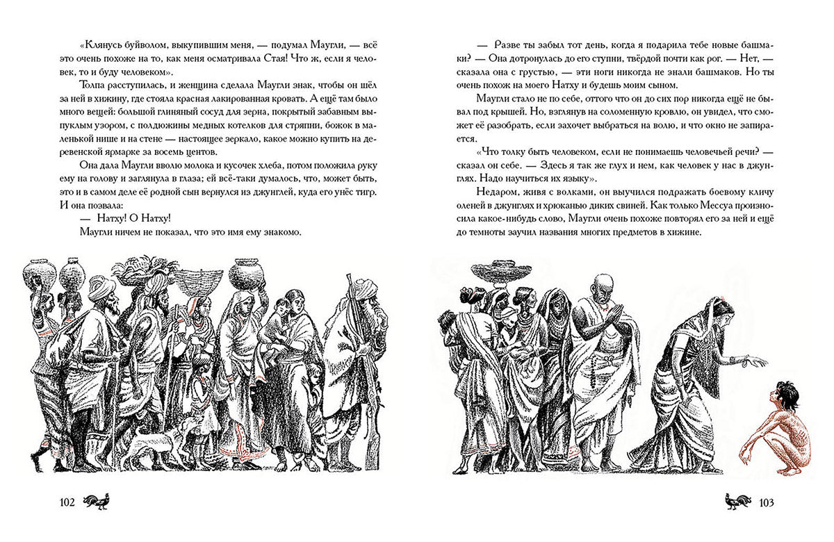 Handling time: 14 days История мальчика, выросшего в волчьей стае и воспитанного мудрыми зверями, — это рассказ о дружбе и преданности, о мудрости, благородстве и справедливости. Недаром герои этой книги — медведь Балу, пантера Багира, волк Акела, удав Каа и, конечно же, сам Лягушонок Маугли — стали любимыми у читателей разных стран и возрастов.