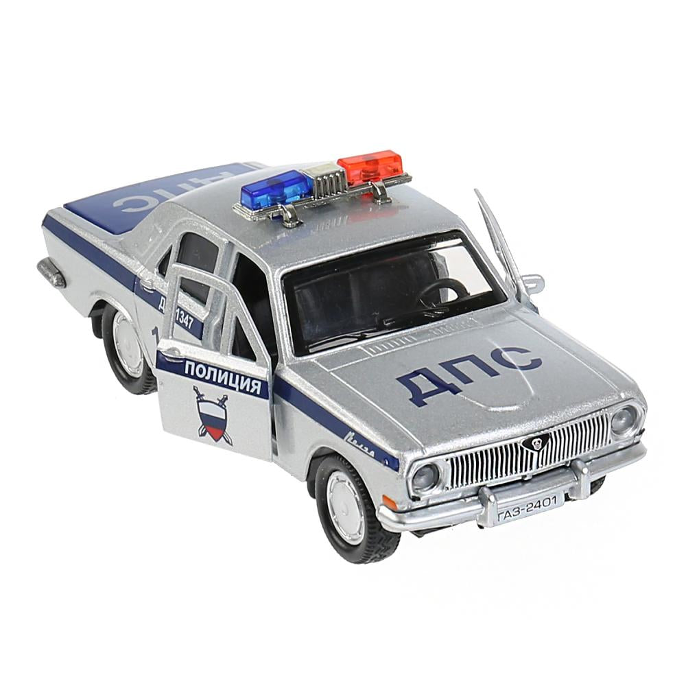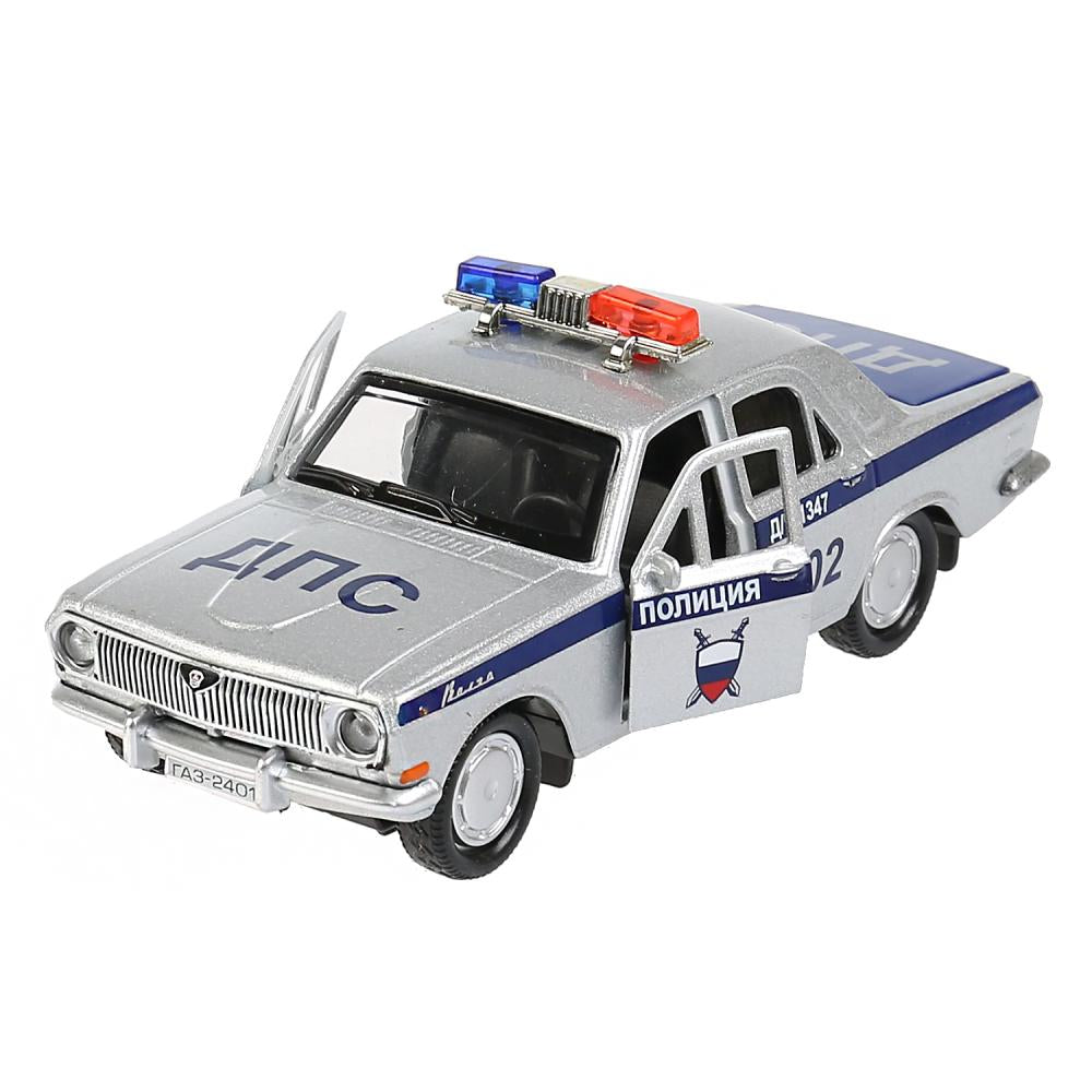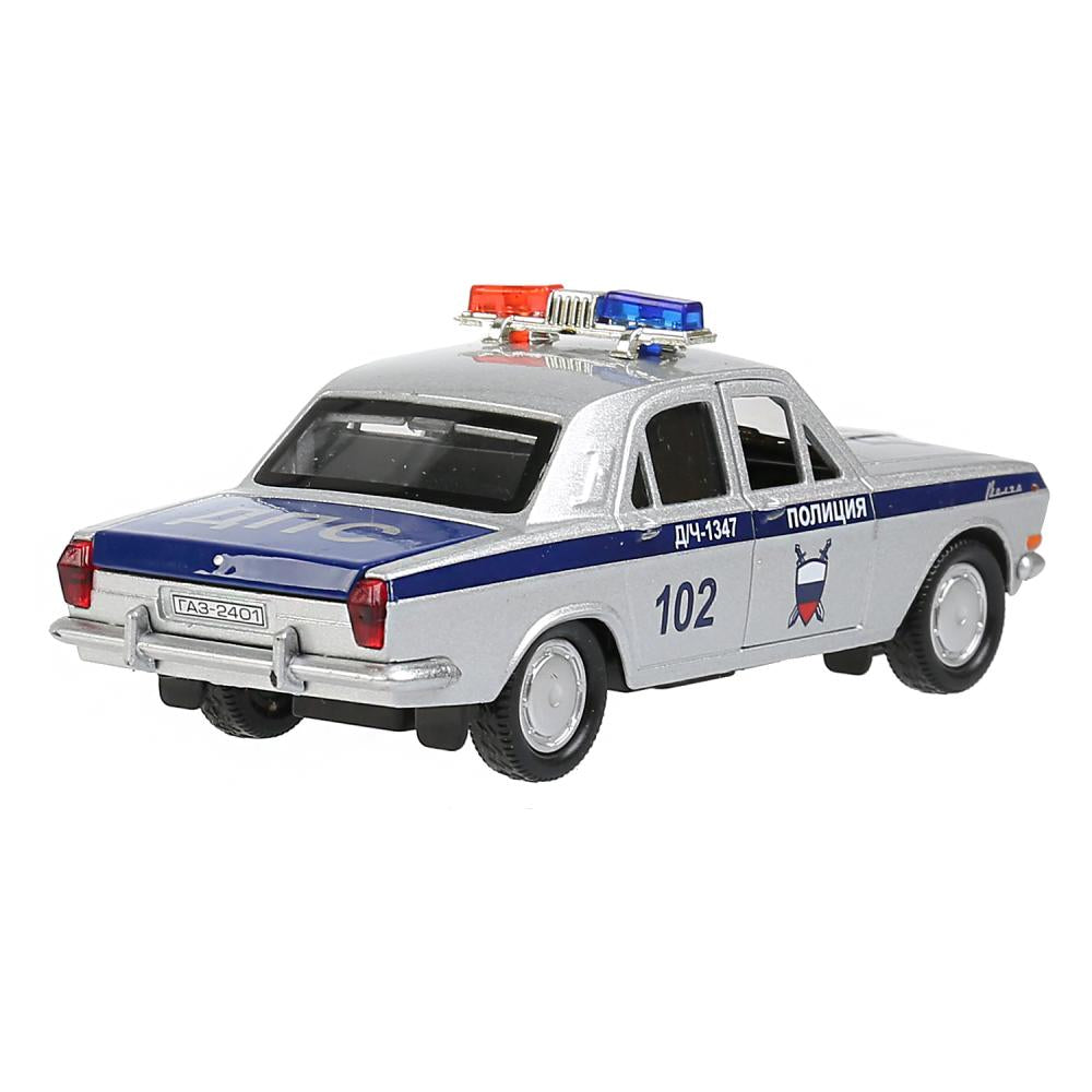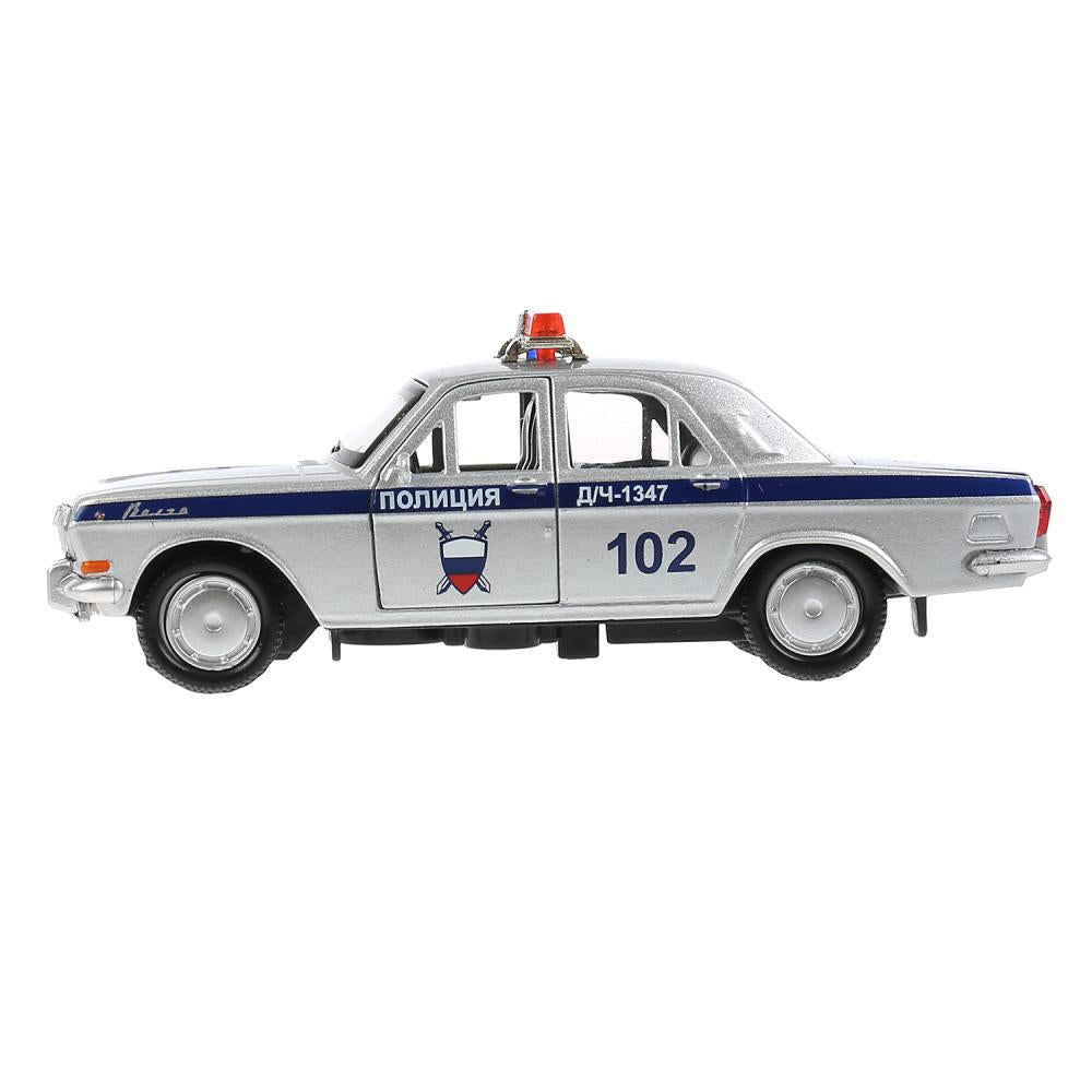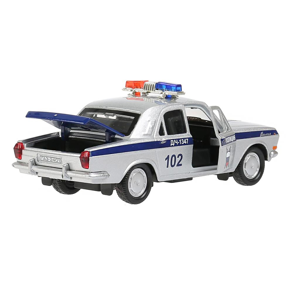 Машина металл ГАЗ-2401 ВОЛГА ПОЛИЦИЯ 12 см, двери, багаж, серебристый, кор. Технопарк в кор.2*36шт