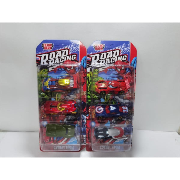 Машина металл ROAD RACING набор супергерои 7,5 см, 3 шт,в ассорт, блистер Технопарк в кор.2*120шт