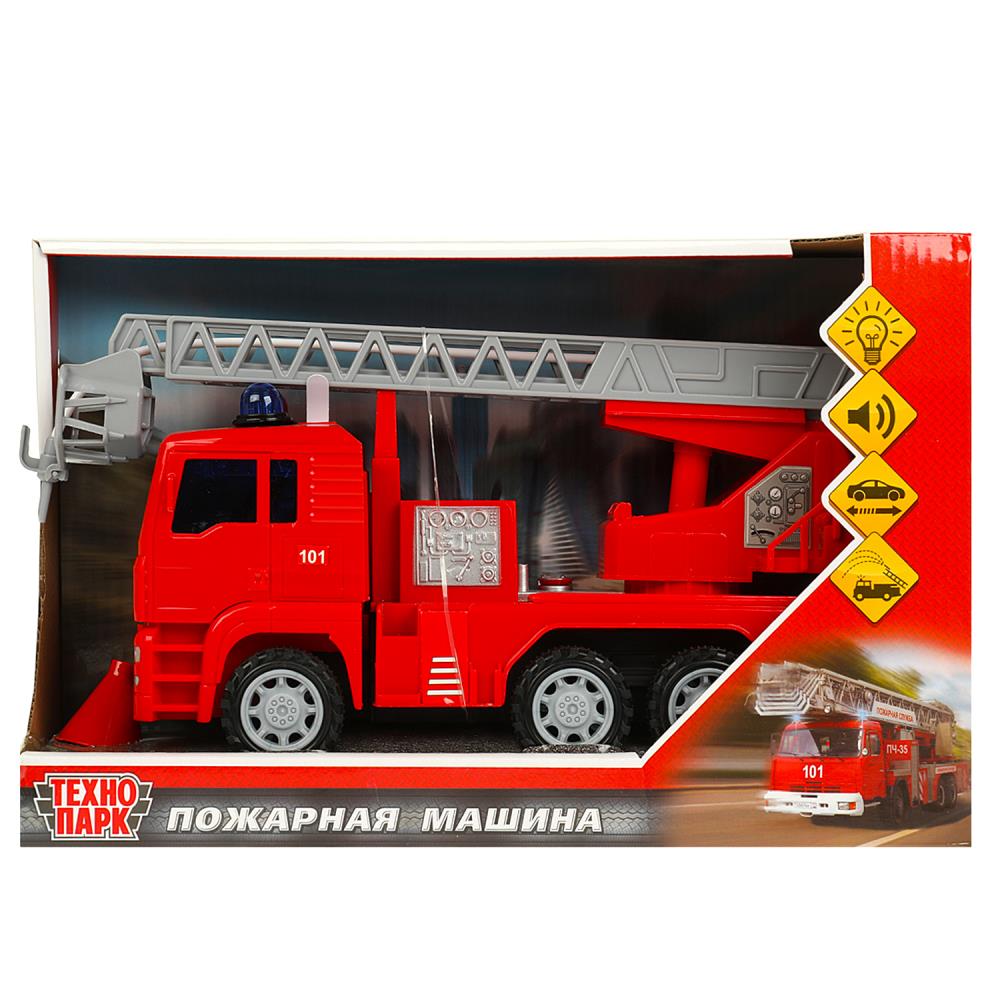 Машина ПОЖАРНАЯ длина 24см, пластик, свет+звук, инерц, брызгает водой в кор. Технопарк в кор.2*12шт