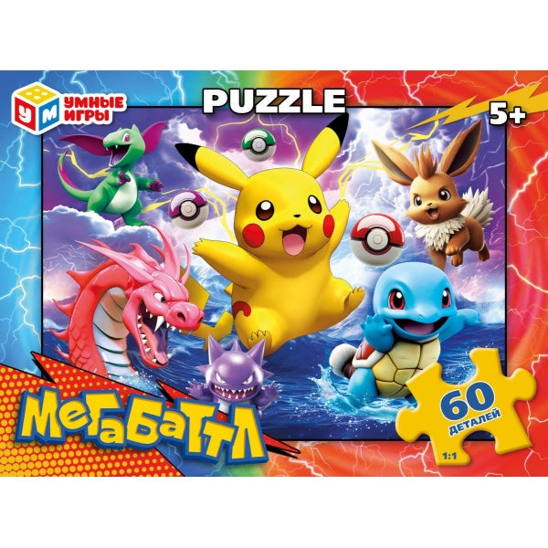 Мегабаттл. Пазлы классические в коробке. Пазл 60 деталей. 190х141х35 мм. Умные игры в кор.24шт