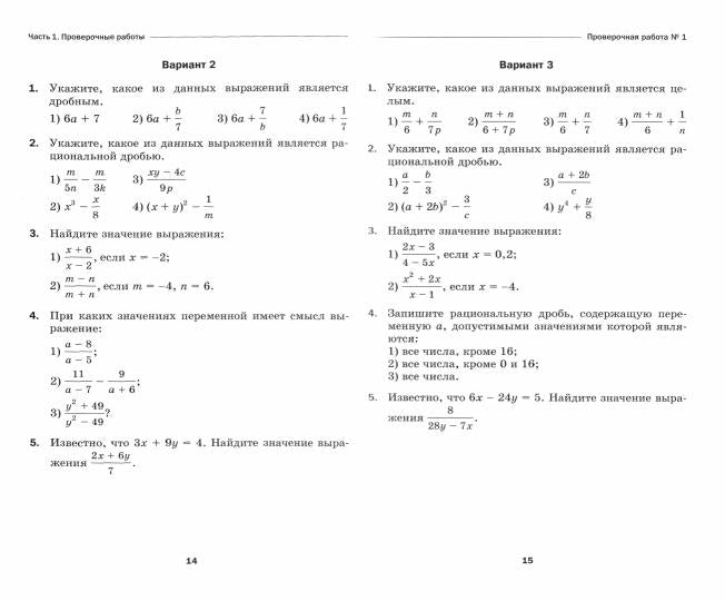 Мерзляк. Алгебра 8кл. Проверочные работы