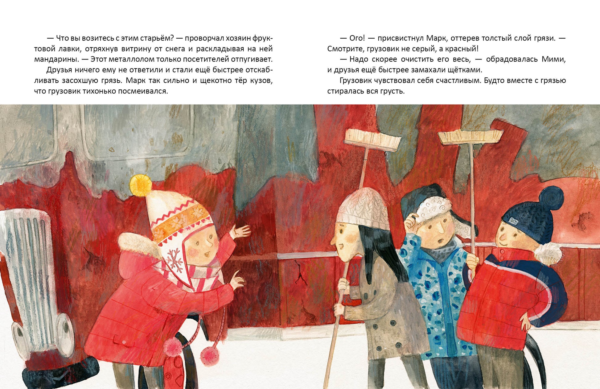 Handling time: 24 days Маленький красный грузовик привозил в город игрушки и всегда радовал детей своим появлением. Но однажды зимой хозяин магазина сказал, что теперь игрушки будет возить новый грузовик, большой и мощный, - а старый грузовик стал слишком медлительным, так что пусть себе стоит в переулке и отдыхает. Маленький красный грузовик простоял там целый год и так зарос пылью и грязью, что и не узнать. Он уж было совсем загрустил, но за несколько дней до Нового года неожиданно познакомился с девочкой по имени Мими. И что тут началось! Неужели красный грузовик снова сможет ездить и радовать ребят?..Для дошкольного и младшего школьного возраста.