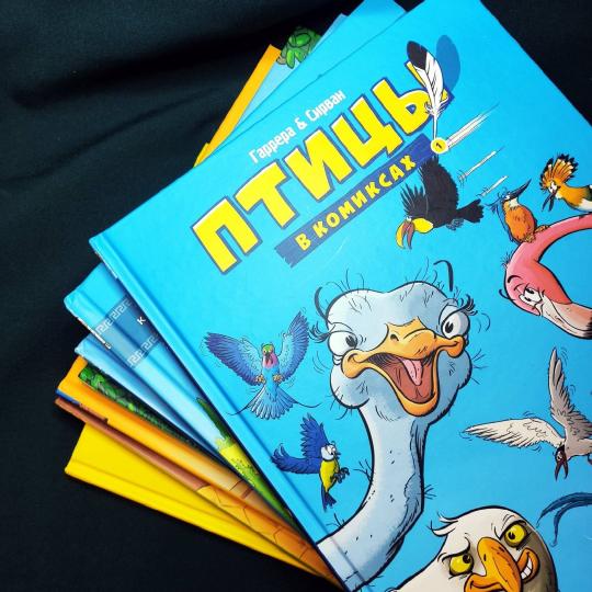 На сей раз французские комиксисты, уже порадовавшие российских читателей яркими сериями про насекомых, морских животных и динозавров, взялись за птиц. А это значит, что вас ждёт встреча с новыми рисованными героями - и не только хорошо всем известными голубями, сороками и воробьями! На страницах первого тома вы познакомитесь с персонажами куда более экзотическими: траурным дронго, скальным петушком, двурогим калао, дымчатым лягушкоротом и многими, многими другими. Вы также узнаете, чем челноклюв отличается от цапли, какую птицу считают самой опасной в мире, во что белоголовому орлану обходится его жадность, едят ли пеликаны других птиц и даже... от чего умер древнегреческий драматург Эсхил! Дополнительную интригу серии придаёт и тот факт, что над ней работает новая, еще не знакомая нашему читателю команда авторов: сценарист Жан-Люк Гаррера, художник Ален Сирван и колорист Давид Ленван, которые решили слегка сместить акцент в научную сторону. Иными словами, эту книгу вполне можно рассматривать как красочную мини-энциклопедию, а обширный познавательный материал, следующий после комикса, подобное впечатление лишь усиливает. Впрочем, фирменный юмор коллекции никуда не делся, и те, кто успел полюбить предыдущие серии за возможность немного повеселиться, разочарованными не останутся. Ну а в том, что птицы - милейшие существа, никто и не сомневался!Для младшего школьного возраста.