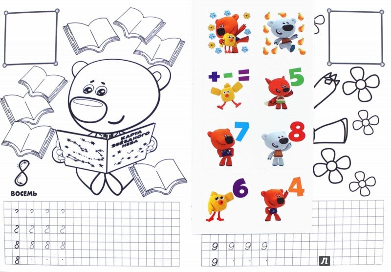 МИ-МИ-МИШКИ. ПРОПИСИ ДЛЯ ДОШКОЛЯТ с наклейками. ПИШЕМ ЦИФРЫ