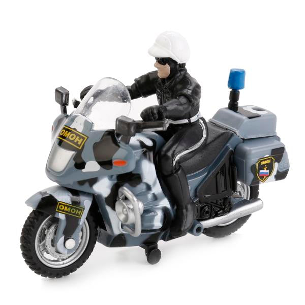 Модель металл МОТОЦИКЛ омон с фигуркой, 9 см, инерц., кор. Технопарк в кор.2*24шт