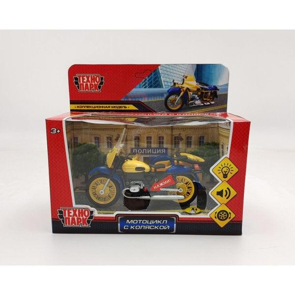 Игрушка "SIDEMOTO-13SLPOL-YE (72) Модель металл свет-звук МОТОЦИКЛ С КОЛЯСКОЙ МИЛИЦИЯ 13 см, желтый, кор. Тех". Размер: 0.192.