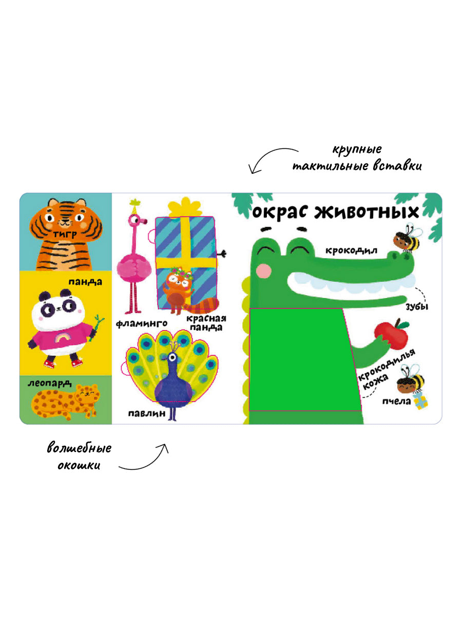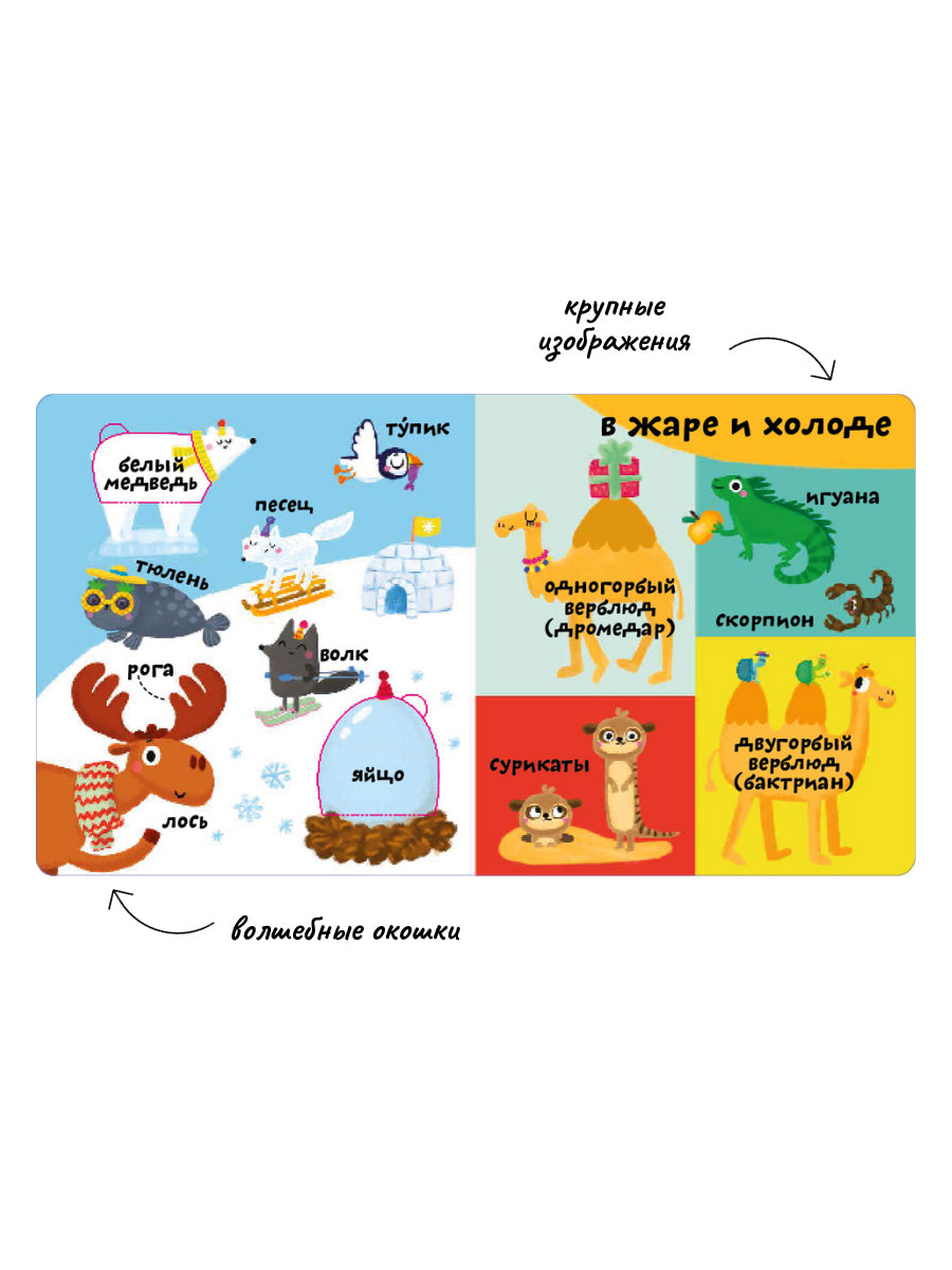 Handling time: 14 days Необычная книжка для любознательных детей. Она познакомит вашего малыша с разными животными: большими и маленькими, быстрыми и медленными, живущими в воде и в лесу, в тёплом и в холодном климате, а также с птицами. Он узнает более 100 слов. Благодаря ярким иллюстрациям, тактильным вставкам и большим окошкам ребёнок с лёгкостью пополнит свой словарный запас, изучит много нового и познавательного.Надо всего лишь открыть или потрогать!Топ-3 главных преимуществ:3. 100 новых первых слов, которые малыш должен узнать до 3 лет2. Самые популярные первые темы для малыша1. Теперь любимые книжки с окошками еще и с тактильными вставкамиЧто найдем внутри:- Более 100 слов на тему разных животных: больших и маленьких, быстрых и медленных, живущих в воде и в лесу, в тёплом и в холодном климате, а также птиц.- Яркие иллюстрации, тактильные вставки и большие окошки.Важно знать родителям:Страницы книги сделаны из плотного картона высокого качества – створки можно открывать множество раз, книга прослужит долго.Рекомендована для детей от 1 года.