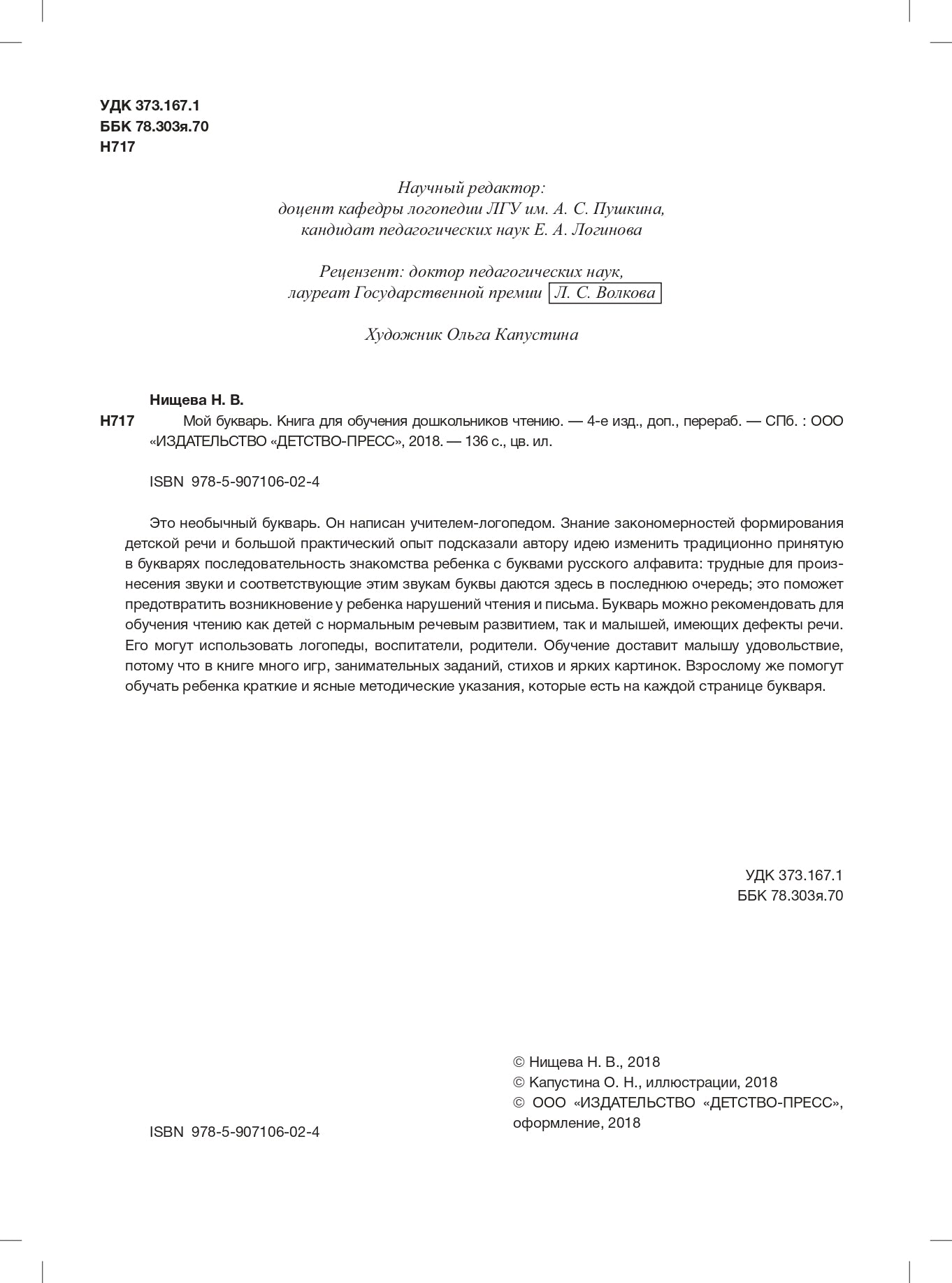 Handling time: 19 days Это необычный букварь. Он написан учителем-логопедом. Знание закономерностей формирования детской речи и большой практический опыт подсказали автору идею изменить традиционно принятую в букварях последовательность знакомства ребенка с буквами русского алфавита: трудные для произнесения звуки и соответствующие этим звукам буквы даются здесь в последнюю очередь; это поможет предотвратить возникновение у ребенка нарушений чтения и письма. Букварь можно рекомендовать для обучения чтению как детей с нормальным речевым развитием, так и малышей, имеющих дефекты речи. Его могут использовать логопеды, воспитатели, родители. Обучение доставит малышу удовольствие, потому что в книге много игр, занимательных заданий, стихов и ярких картинок. Взрослому же помогут обучать ребенка краткие и ясные методические указания, которые есть на каждой странице Букваря.